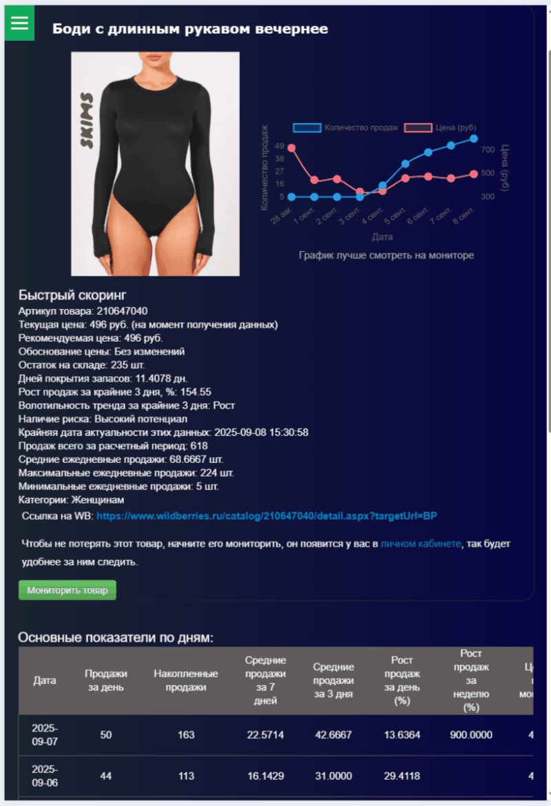 Персонализированные рекомендации товаров с объемами закупок и ценообразованием под вашу нишу и бюджет, чтобы селлер на любом этапе смог воспользоваться сервисом